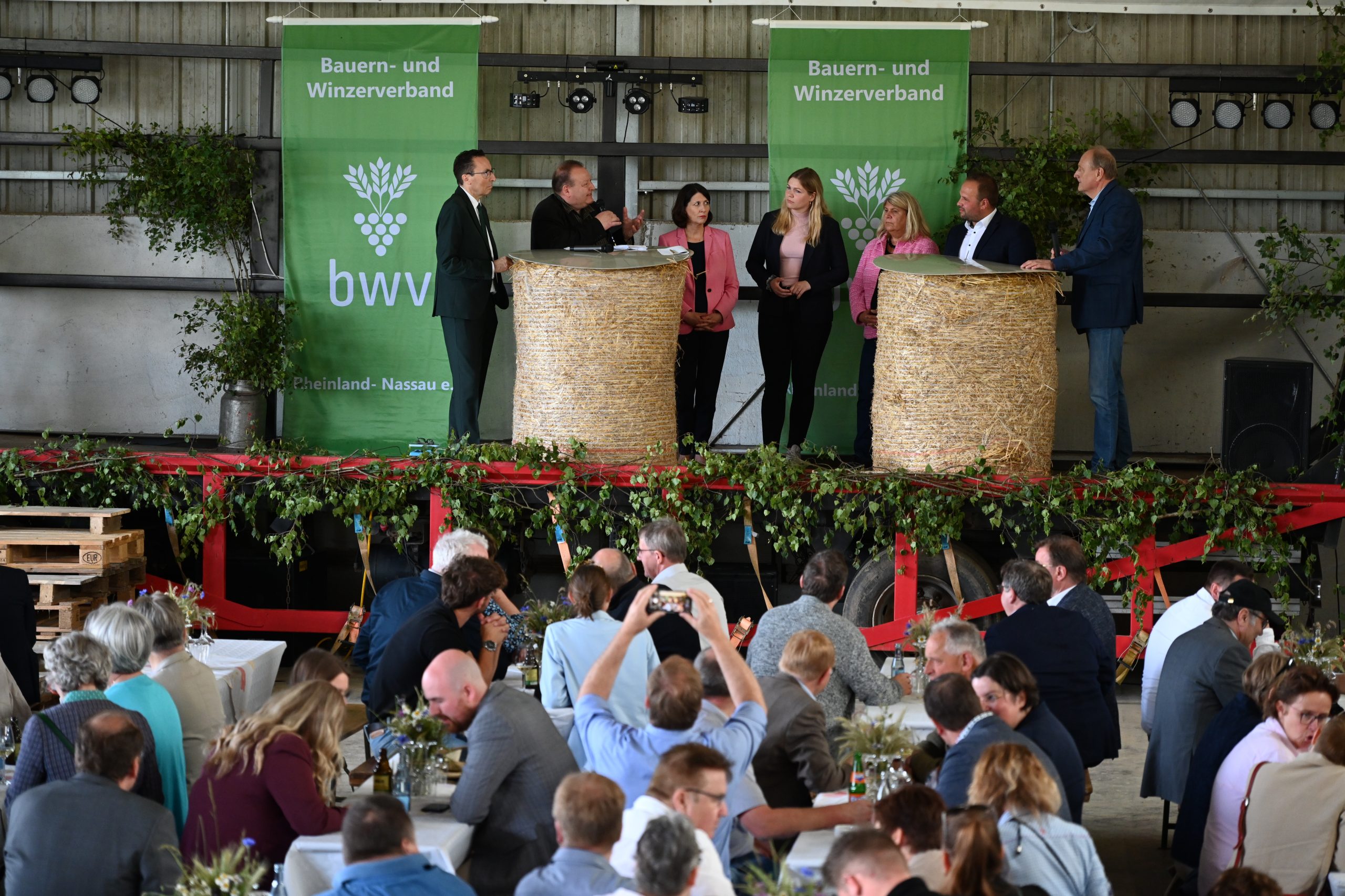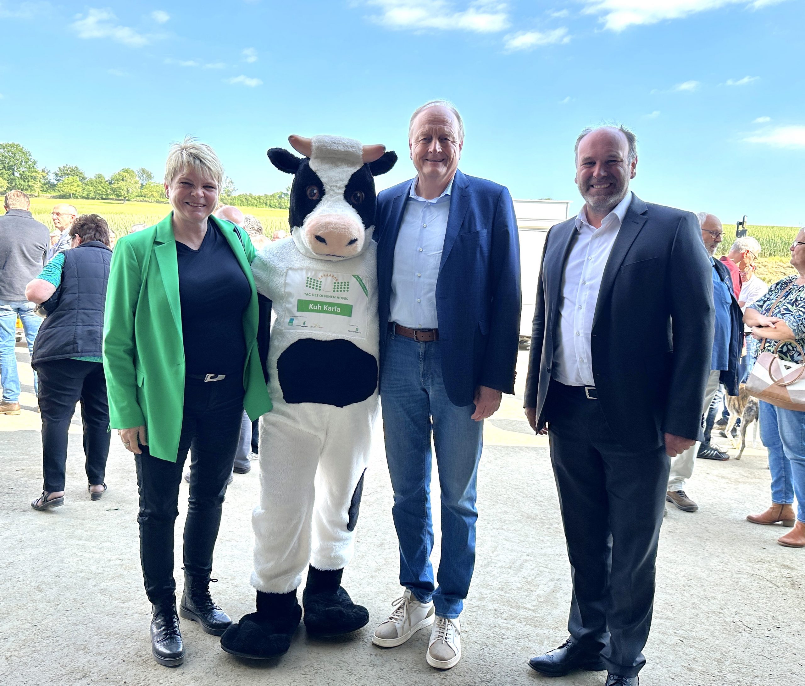 Seesbach. Der Deutsche Bauernverband (DBV), der Deutsche LandFrauenverband (DLV) und der Bund der Deutschen Landjugend (BDL) führten dieses Jahr die zentrale Auftaktveranstaltung zum Tag des offenen Hofes auf dem Betrieb der Familie Purpus in Seesbach im Landkreis Bad Kreuznach durch. Entsprechend hochkarätig waren die Ehrengäste. Neben dem Präsidenten des Bauern- und Winzerverbandes Rheinland-Nassau (BWV) Marco Weber, LandFrauenpräsidentin Gudrun Breuer und stellvertretende Landjugendvorsitzende Katharina Weber sowie Benjamin Purpus, der zugleich Betriebsleiter des ausrichtenden Betriebes war, waren der Präsident des DBV, Joachim Rukwied, Landwirtschaftsministerin Daniela Schmitt, die Vorsitzende des BDL, Theresa Schmidt, die Vizepräsidentin des DLV, Ursula Braunewell und Oliver Conz vom Bundeslandwirtschaftsministerium (BMEL) zugegen. Darüber hinaus waren einige Abgeordnete verschiedener Parlamente und Vertreter von Behörden, Institutionen und Verbände vor Ort.