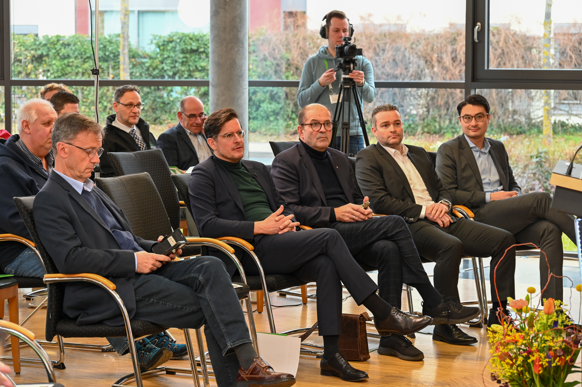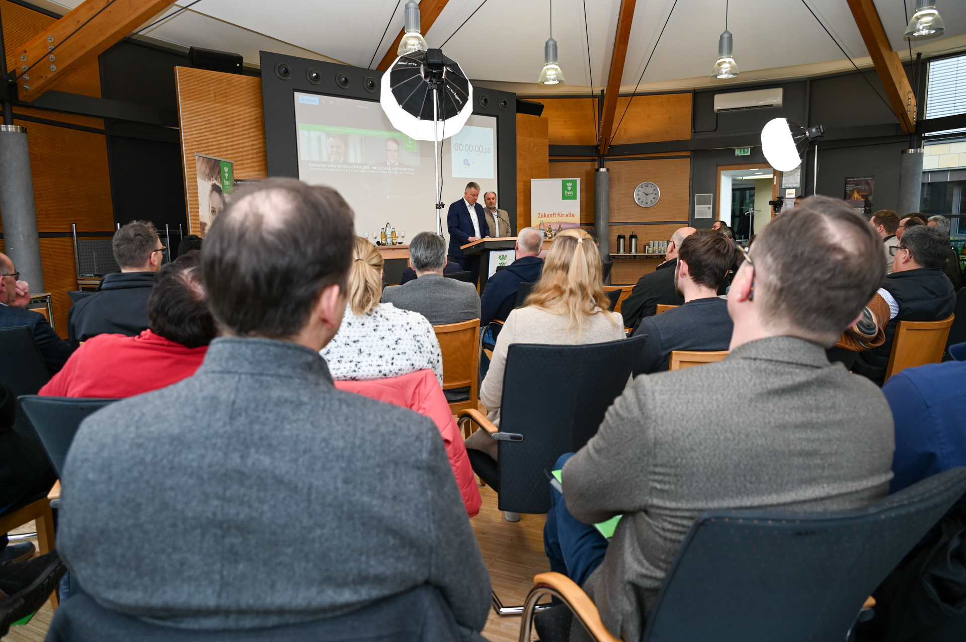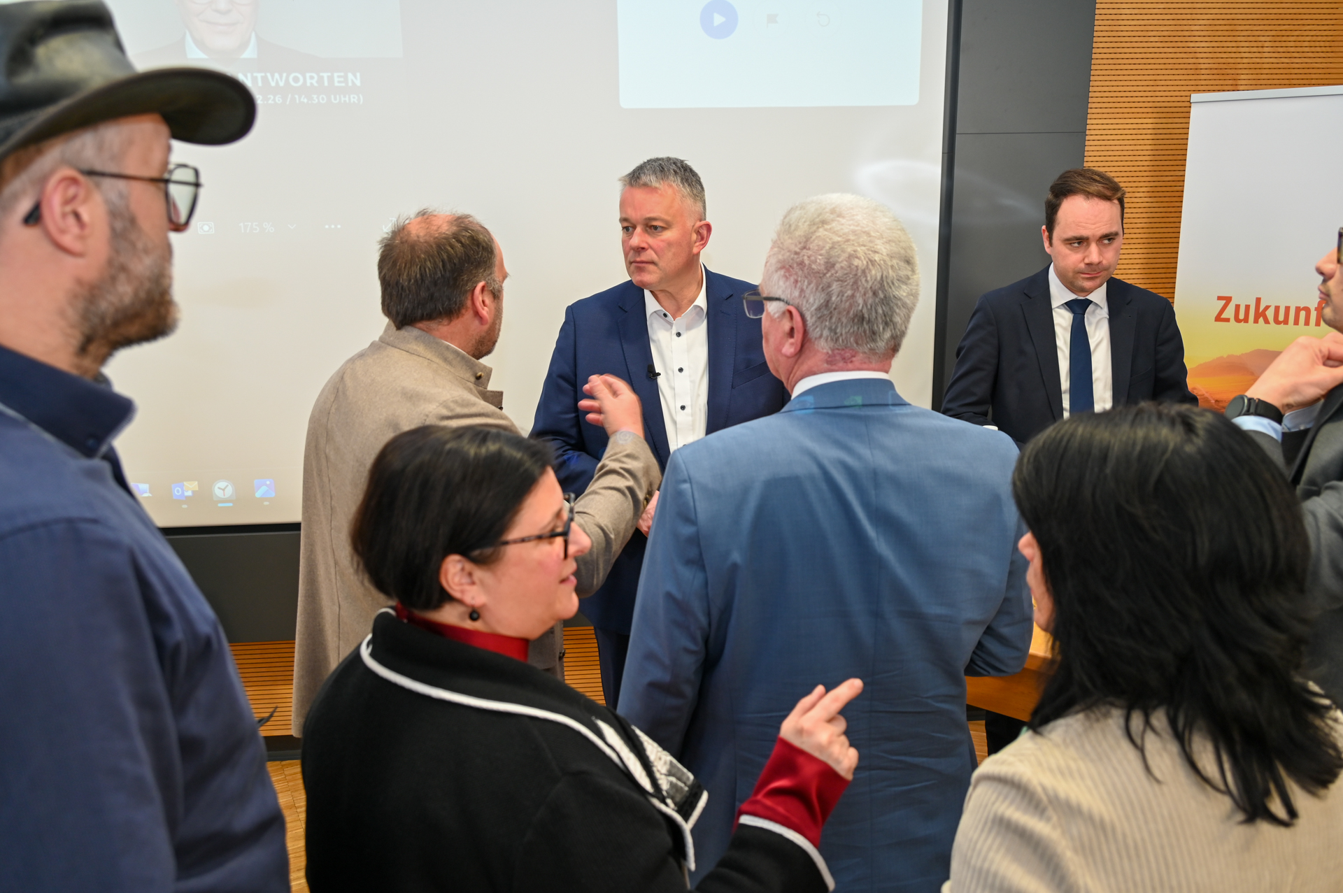 Kreisgeschäftsführer Pascal Kersten wünschte sich eine deutliche Reduzierung des enormen Flächendrucks durch den Ausbau von Photovoltaikanlagen. Er forderte Schnieder auf, als Ministerpräsident diese Anlagen als Ausgleichflächen anzuerkennen. Im Rahmen von Ausgleichsmaßnahmen müssten klimaschutzrelevante Aspekte berücksichtigt werden. Schnieder entgegnete, dass die Rückführung der Förderung für EE-Anlagen nicht zu verstehen sei. Präsident Weber forderte eine bessere Flächeneffizienz für Freiflächenanlagen. Dazu gehöre die Anerkennung der PV-Anlagen als Ausgleichsflächen und die Nutzung dieser Anlagen auf Grünlandflächen. Diese könnten die Wiesen naturschutzfachlich sogar aufwerten.
