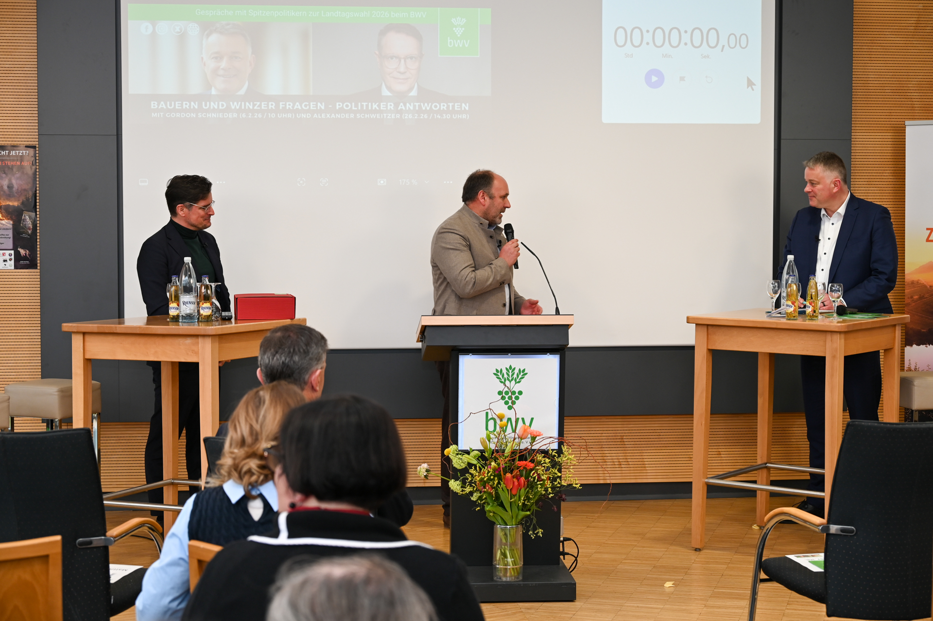 Am Ende der Veranstaltung machte der BWV-Präsident Marco Weber deutlich, dass der Verband für die Zukunft der Betriebe und deren Hofnachfolger arbeite. Dies sei nachhaltig und für ihn der Mittelpunkt der Verbandspolitik: „Der BWV ist Begleiter der Politik und parteiunabhängig.“ Er dankte Gordon Schnieder, dass er sich den Fragen der Bauern und Winzer gestellt habe und allen, die an der Veranstaltung teilgenommen haben. Gleichzeitig lud der Präsident für die BWV-Podiumsveranstaltung am 26. Februar ein, bei der sich Ministerpräsident Alexander Schweitzer den Fragen der Bauern und Winzer stellen wird.