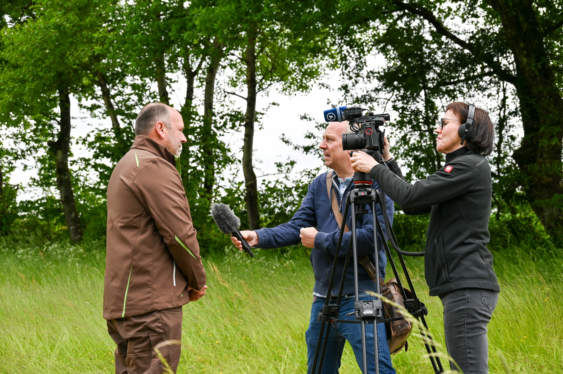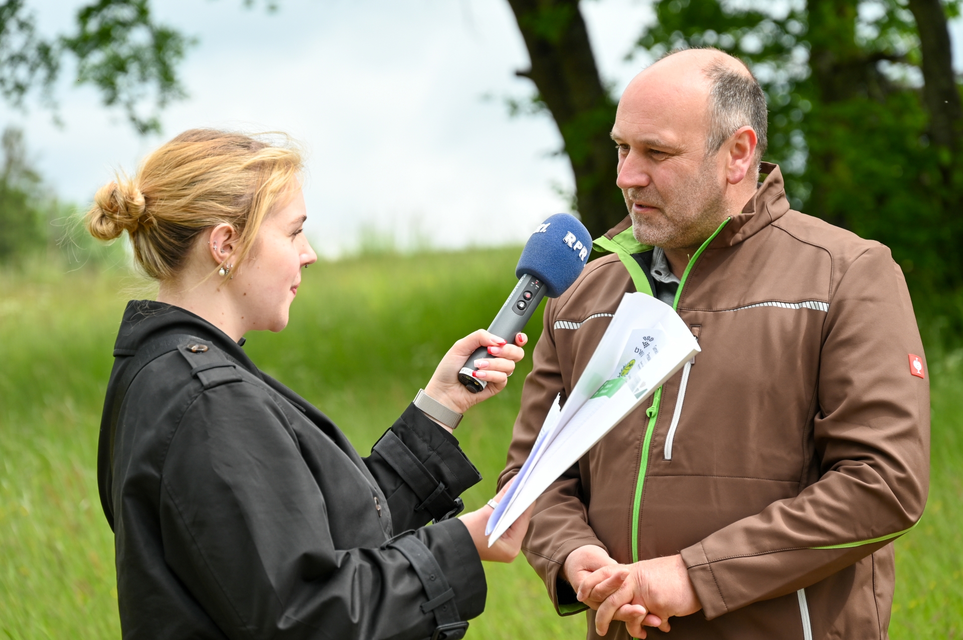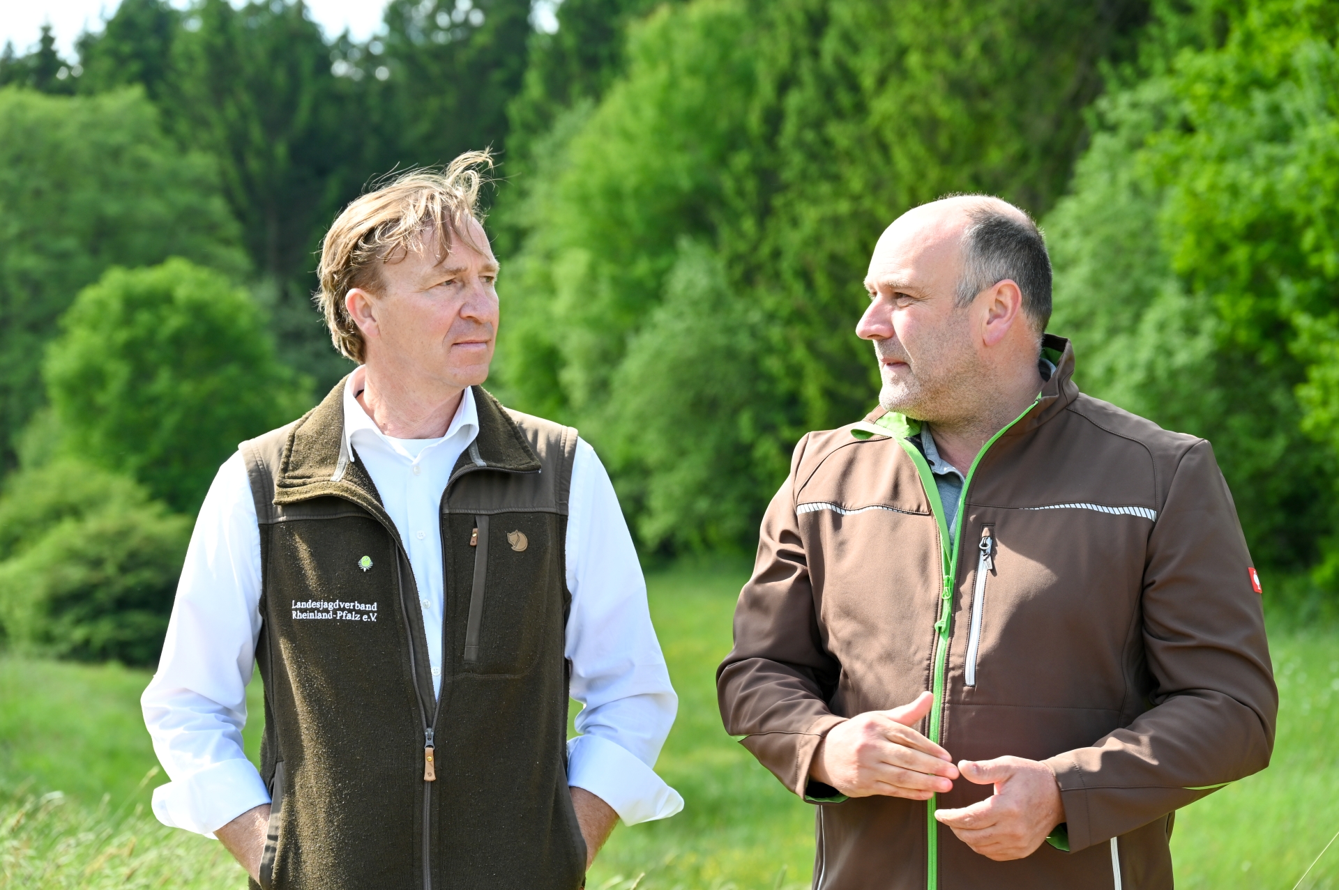 Katzwinkel. Nach der Trockenphase steht die Fortsetzung der Wiesenmahd bevor. Der Landesjagdverband Rheinland-Pfalz (LJV) und der Bauern- und Winzerverband Rheinland-Nassau (BWV) informierten im Rahmen einer gemeinsamen Pressekonferenz auf dem Berghof der Familie Reif in Katzwinkel (Vulkaneifelkreis) darüber, wie Jungwild während der Mäharbeiten geschützt werden kann. Die Mahd fällt in die Brut- und Setzzeit vieler Wildtiere – insbesondere der Rehe. Um zu verhindern, dass Rehkitze durch Mähwerke verletzt oder getötet werden, arbeiten Jäger und Landwirte eng zusammen.