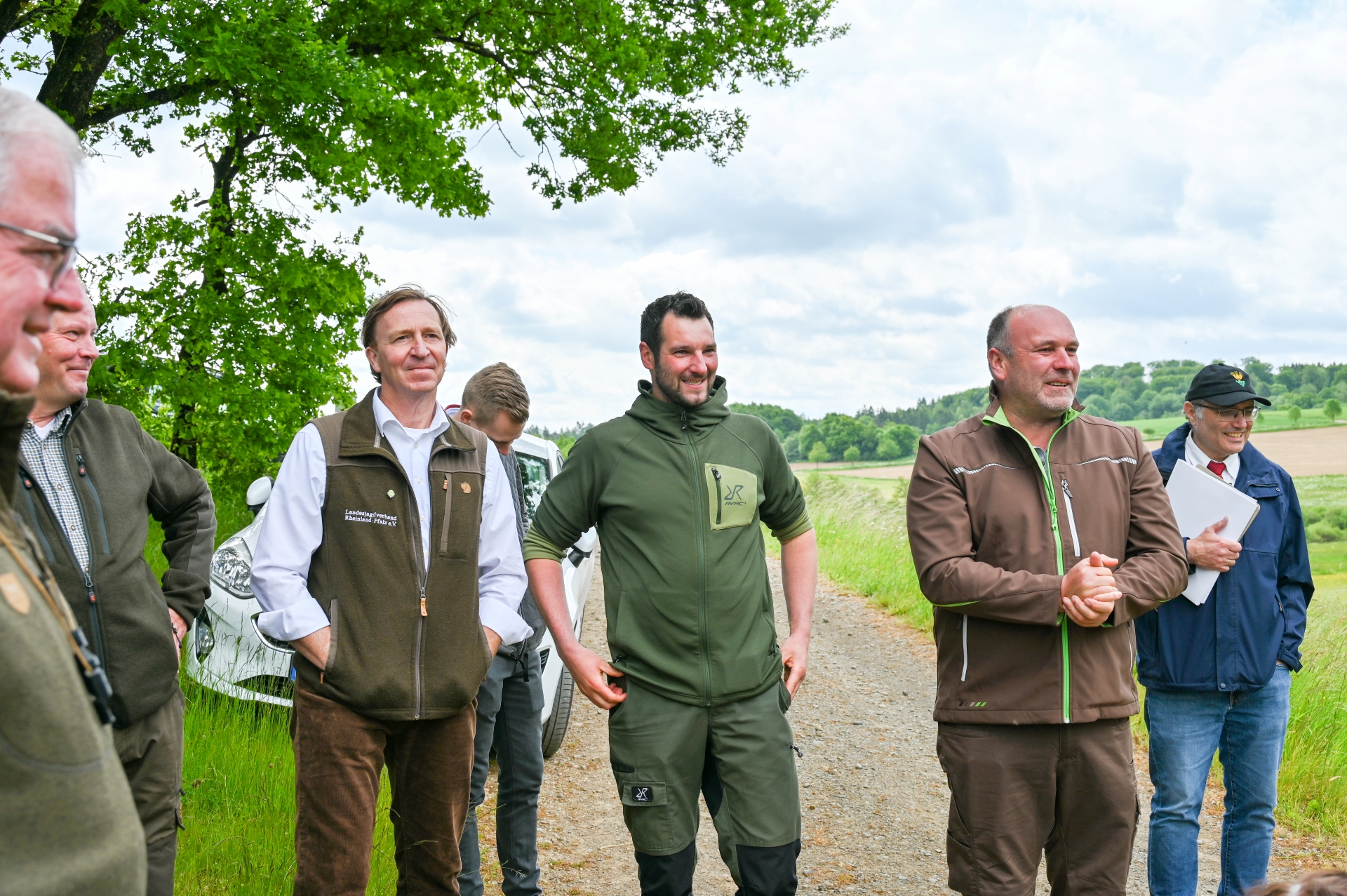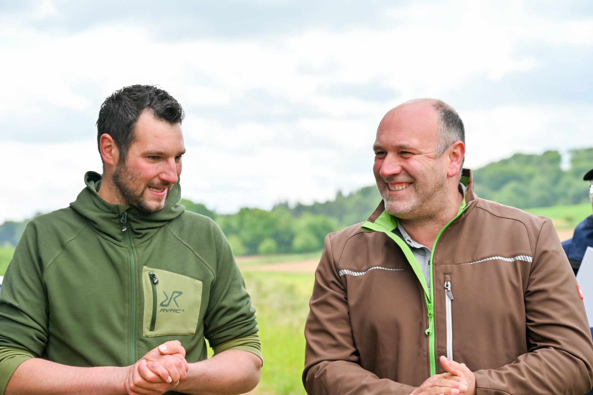 Der gastgebende Landwirt Sebastian Reif berichtete über den erheblichen Aufwand, der hinter den Kitzrettungsaktionen stecke: „100 Hektar Wiesen während einer ‚Regenpause‘ zu mähen, erfordert eine punktgenaue Überprüfung der Flächen durch erfahrene Drohnenpiloten. Nicht jedes Jahr haben wir stabiles Wetter. Grundlage für den Erfolg ist eine gute und effektive Kommunikation mit der ortsansässigen Jägerschaft.“ Reif bedankte sich bei den Jagdpächtern für ihre Kooperationsbereitschaft.